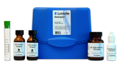 Anionic surfactants are extracted with toluene and break up an ion pair, releasing bromphenol blue into a water layer. Using the drop count method, a standard color reagent is then used to determine the concentration. Range and sensitivity is 1 drop = 1.0 ppm Detergent.