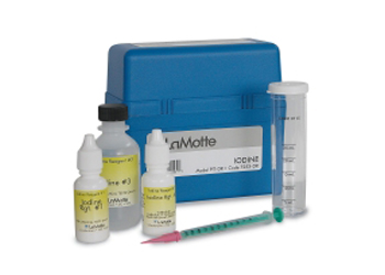 This kit tests for Iodine using the direct reading titrator method. Range/Sensitivity is 0-50 ppm/1 ppm I2.