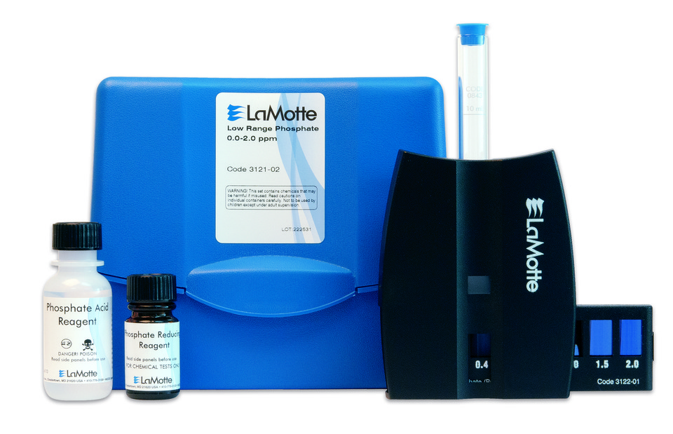 This LaMotte Phosphate test kit tests for low range Phosphate using the LRC Comparator. Range and sensitivity is 0, 0.2, 0.4, 0.6, 0.8, 1.0, 1.5, 2.0 ppm PO43-.