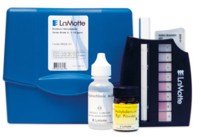This Sodium Molybdate test kit tests for molybdate using xanthate and the Octa-Slide 2 Comparator. Range/sensitivity is 1, 2, 3, 4, 5, 6, 8, 10 ppm sodium molybdate.
